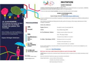 Organisé par la MSP de Pontivy, des professionnels de santé et des organismes spécialisés sont intervenus pour informer le public sur les vaccins selon l’âge et les situations médicales, présenter les publics concernés par les campagnes de vaccination et apporter des informations sur le Dossier Médical Partagé. Cette soirée visait à sensibiliser à l’importance de la vaccination et de la prévention, tout en offrant un temps d’échange avec des professionnels. Les participants avaient également la possibilité de se faire vacciner contre la grippe sur place.